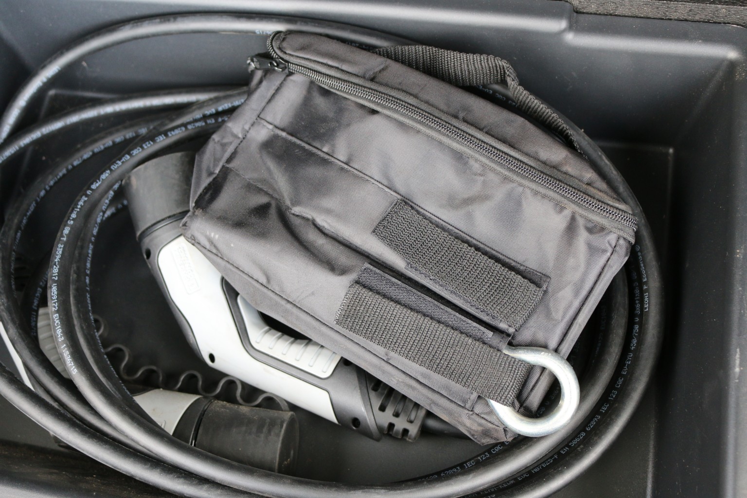 Storage Compartment for Charging Cable under Boot Floor