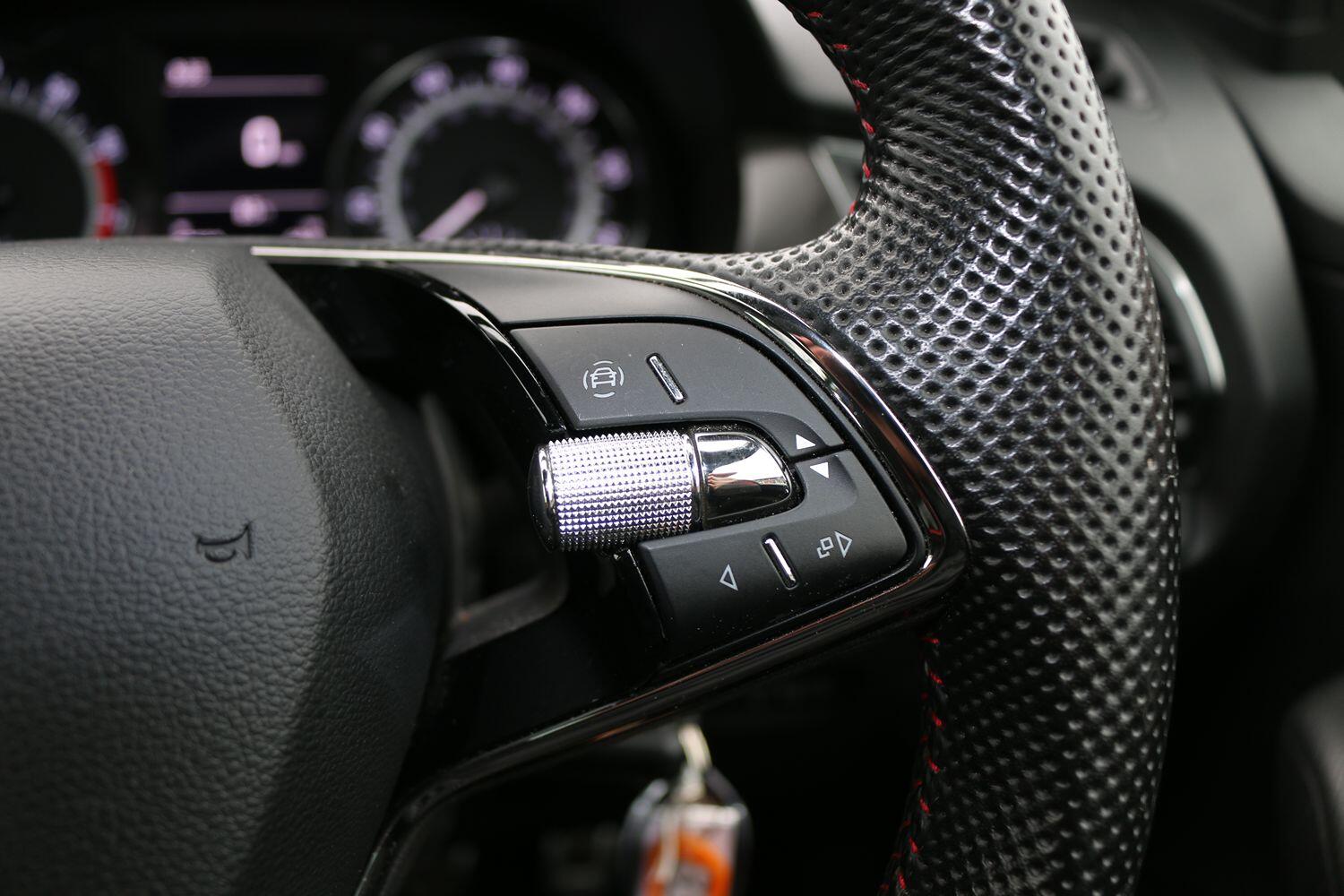 3-Spoke Sports Leather Multi-Function Steering Wheel with Red Stitching